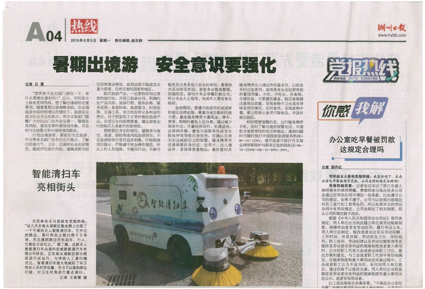 湖州市主要媒体集中报道宏威无人智能清扫车