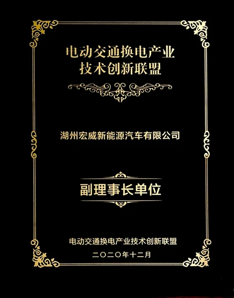湖州宏威新能源汽车有限公司凭借过硬产品、成熟的换电技术入选联盟副理事长单位。